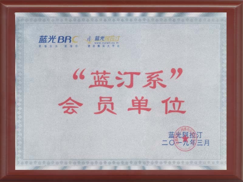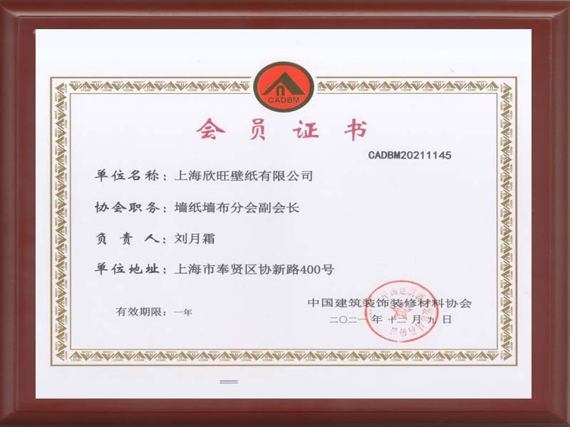 Membership certificate of Wallpaper and Wall Covering Branch of China Building Decoration Materials Association